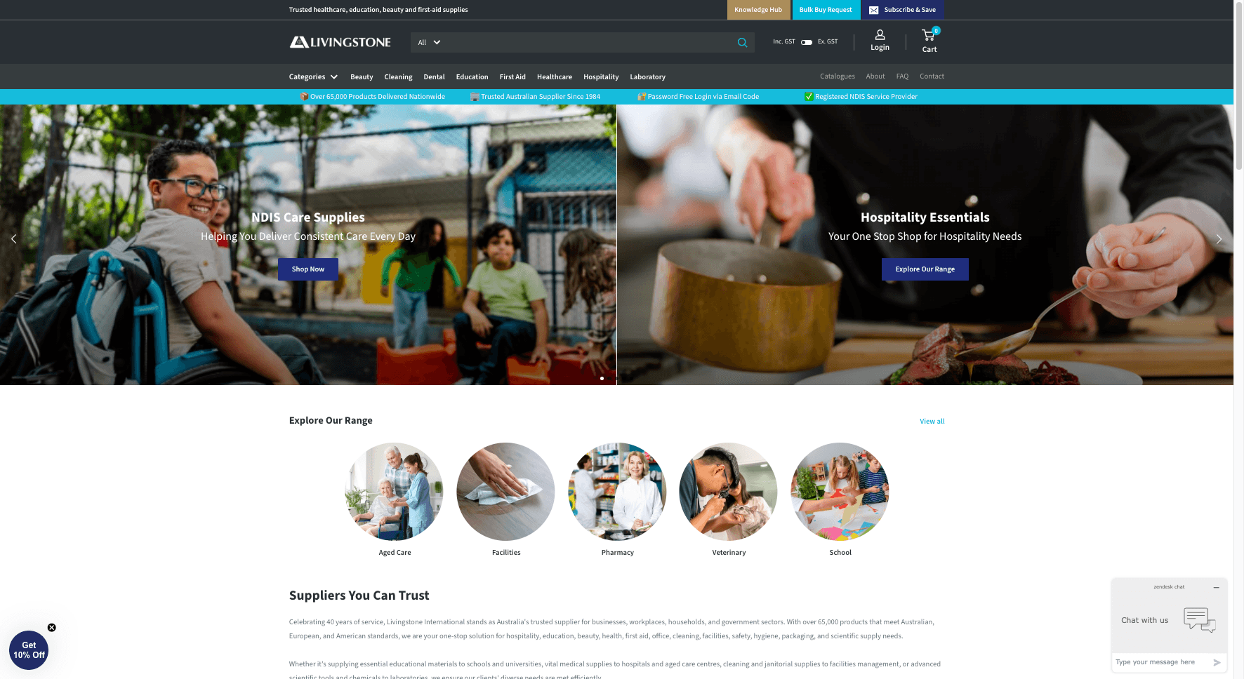 Livingstone International is an Australian supplier to businesses, households, and government sectors, offering over 65,000 products across hospitality, education, health, facilities, safety, hygiene, packaging, and scientific supplies.