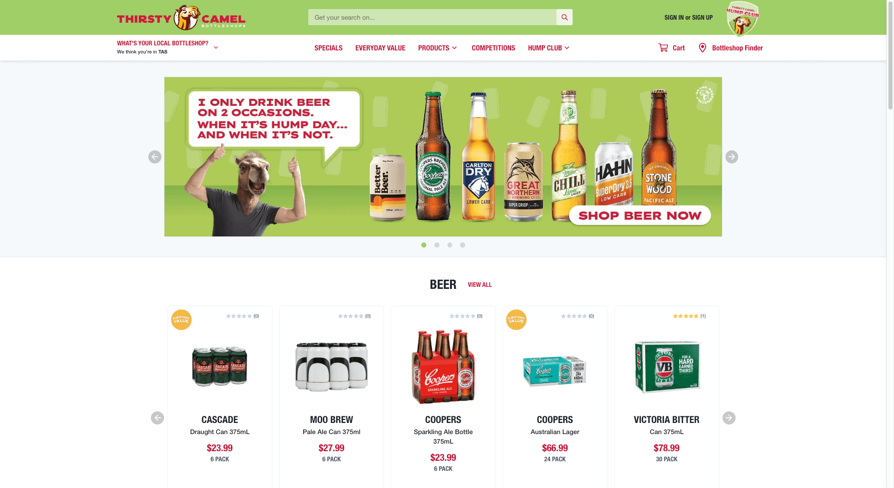 Thirsty Camel required an ecommerce solution capable of supporting both B2C and B2B audiences while managing complex product ranging, pricing, and promotions across different states and venues. The platform also needed to be simple and intuitive for non web savvy users, including publicans and venue staff, while enabling Click & Collect and delivery across a national franchise network.